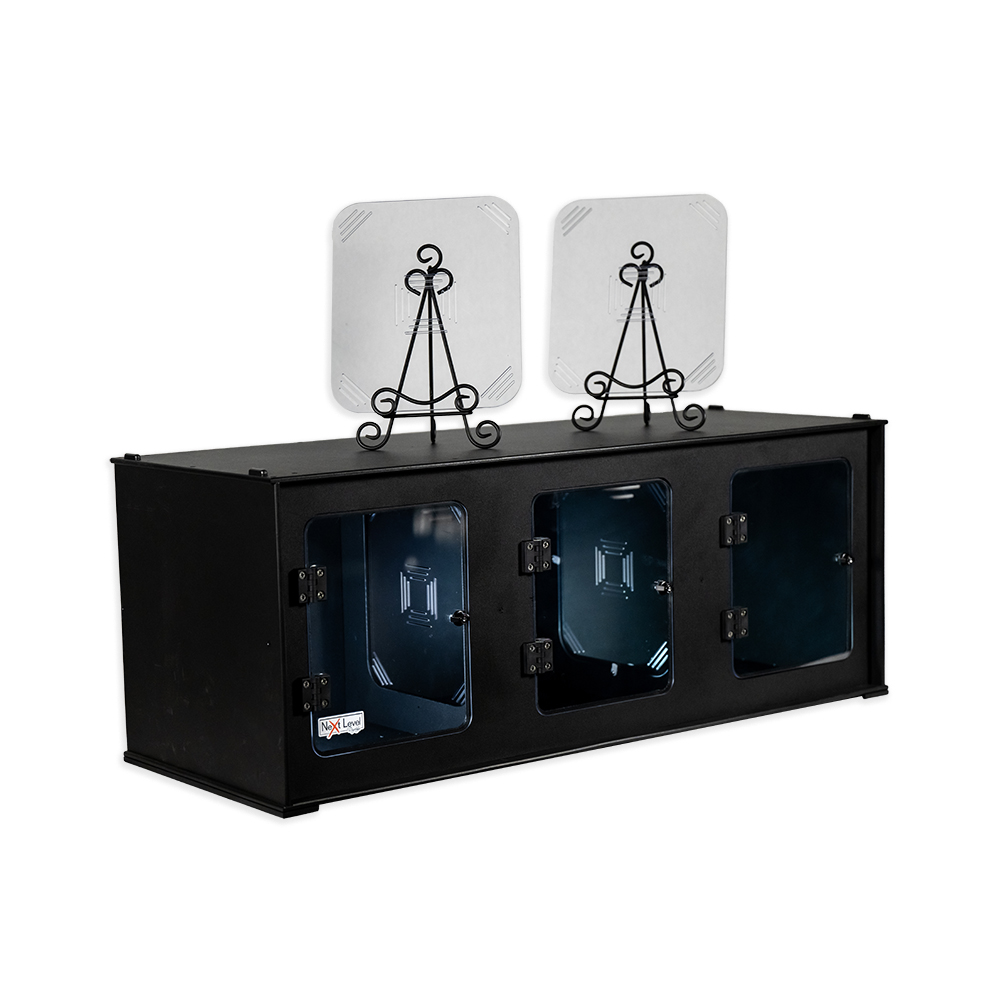 • Hinged latching acrylic doors